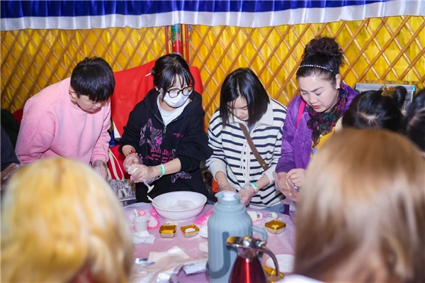 在月饼DIY区域里,工作人员现场指导游客制作蒙古族特色月饼,奶黄、红枣、紫薯等特色馅料香气四溢。家长与孩子齐心协力揉面、包馅、压模,成品装入定制礼盒,满载团圆心意与劳动喜悦。